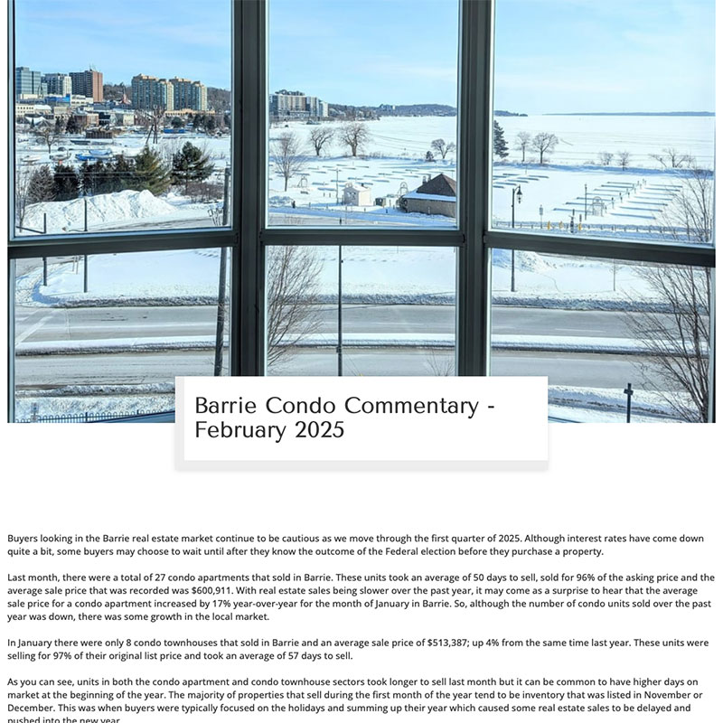 In addition to Barrie Condo Corner's resource centre, Ashley Lamb is known for her condo market report that she writes every month for the Barrie area. Not only is her report e-mailed out to her subscribers, but it is also published on